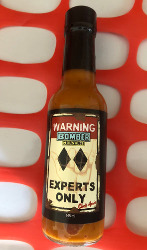 Inspired by the adrenaline pumping black diamond descents of the Rocky and Coastal Mountains Bomber imitates the rush of flying down a steep vertical with laser focus. The stakes are high at these speeds, one slip could be your last! It begins with a pleasant sweet and smokey flavour before the Carolina Reapers storm in with blistering heat! Start with just a drop as this sauce packs a serious punch. "EXPERTS ONLY" proceed with caution!